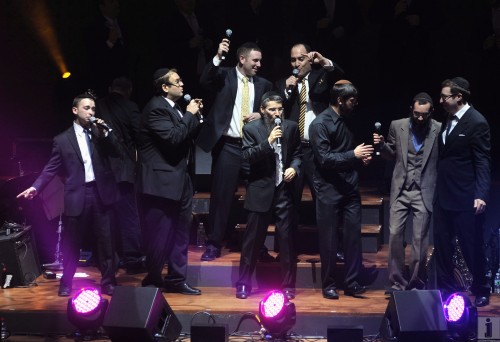 The video started up again. All you saw was a door and heard running water. The announcer’s voice came on and asked whether you ever wondered what Avraham Fried sounds like when he sings in the shower. We were all laughing and waiting to see/hear what would happen. All of a sudden you hear Avremel belting out “Hashem bless Americare…” with his powerful voice completing the song. Avremel then appears on stage joined by the Avraham Fried choir led by the ultra talented Shloime Kaufman singing “Levinyomin”. The orchestra for the second half of the show was lead by the talented Steve Bill and they were doing a really great job. After Avremel asked how we were all doing, he said he wanted to sing a Hebrew song, a tefilla for Ohel. The song of choice was “Rak T’filla” and the audience was eating it up. Keep in mind Avremel has been performing all over for the last 30+ years. Yet he was as energized as ever and his voice, like great wine, gets better with age. Fried next invites back to the stage Shimon Craimer and Netanel Hershtik to join him singing Yossi Green’s world famous “Aderaba”. Now, no matter how many times I hear this song, the three of them together was really something to behold. Craimer’s voice is perfect for the song and Hershtik’s tone added elements that brought the song to a whole new level. After thanking both Netanel and Shim for their help with Aderaba, Avremel asked the crowd what they would like to hear. A young man sitting in the front row yelled out, “No Jew”, and Avremel said “How did you know?”. “This song was first recorded in 1978,” Avremel said, “And it is still being sung across the globe today, more than 30 years later”. Midway into the song Lev Tahor joined Fried on stage and the song took a whole other turn. The new harmonies that Lev Tahor introduced were mind-blowing. The ending though had the crowd on their feet. Avremel sang the words LevTahor to the tune of the song and Lev Tahor answered back Avraham Fried, Avraham Fried. They were having so much fun on stage that ultimately we were thrilled with them in the crowd. Avraham Fried sang a Chabad melody because Yud Tes Kislev, which celebrates the Alte Rebbe’s release from prison, is right around the corner. He also had a Moshiach set with some great oldies.