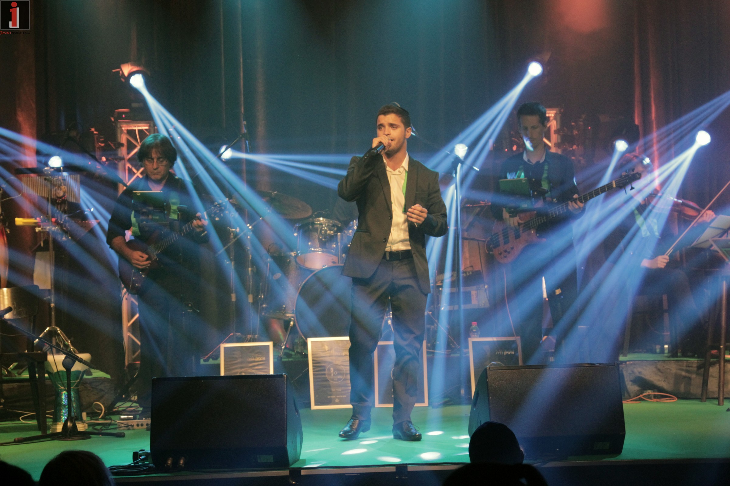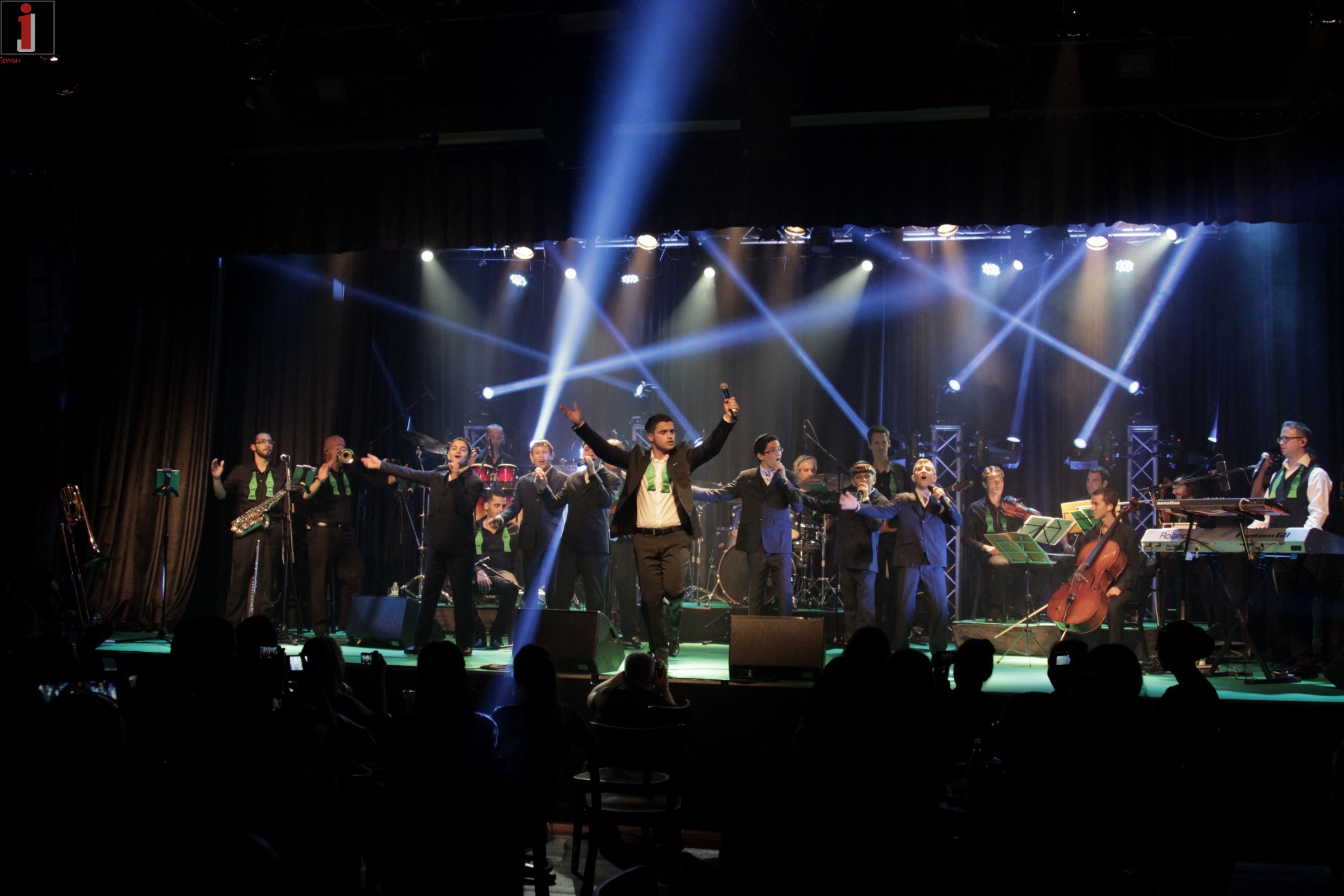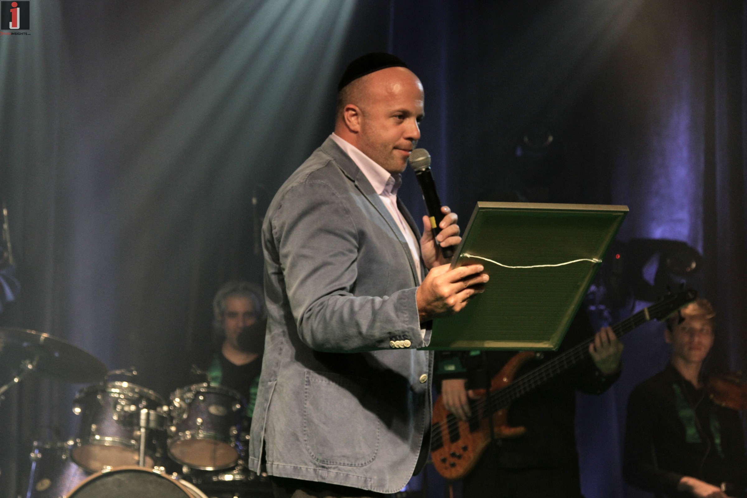 A few days ago Itzik Dadya held a release concert for his new album “Mechavein El Ha’Or” in Tel Aviv. The event started with a siyum and some Divrei Bracha from R’ Chaim Horovitz, and immediately thereafter the music started. It was worth the wait. From the green suits worn by the musicians on stage, to the lighting, to the incredible music that was heard throughout the night. No less than 14 musicians were there playing, conducted by maestro Gershon Freishtat who truly outdid himself. New arrangements for every song on the album, as well as Itzik Dadya himself sitting on stage and performing some of the new songs with his incredible voice. He also sang a few of his other major hits. A number of his good musical friends also graced the stage, such as Ohad Moskowitz, Yishai Ribo, the Kinderlach, and Daniel Ahaviel. Over the course of the evening Menachem Toker surprised Itzik with a “Gold Album” presentation, because the album has already sold 20,000 copies, and a number of the musicians who worked on the album came up on stage as well, including David Fadida, who produced the album.