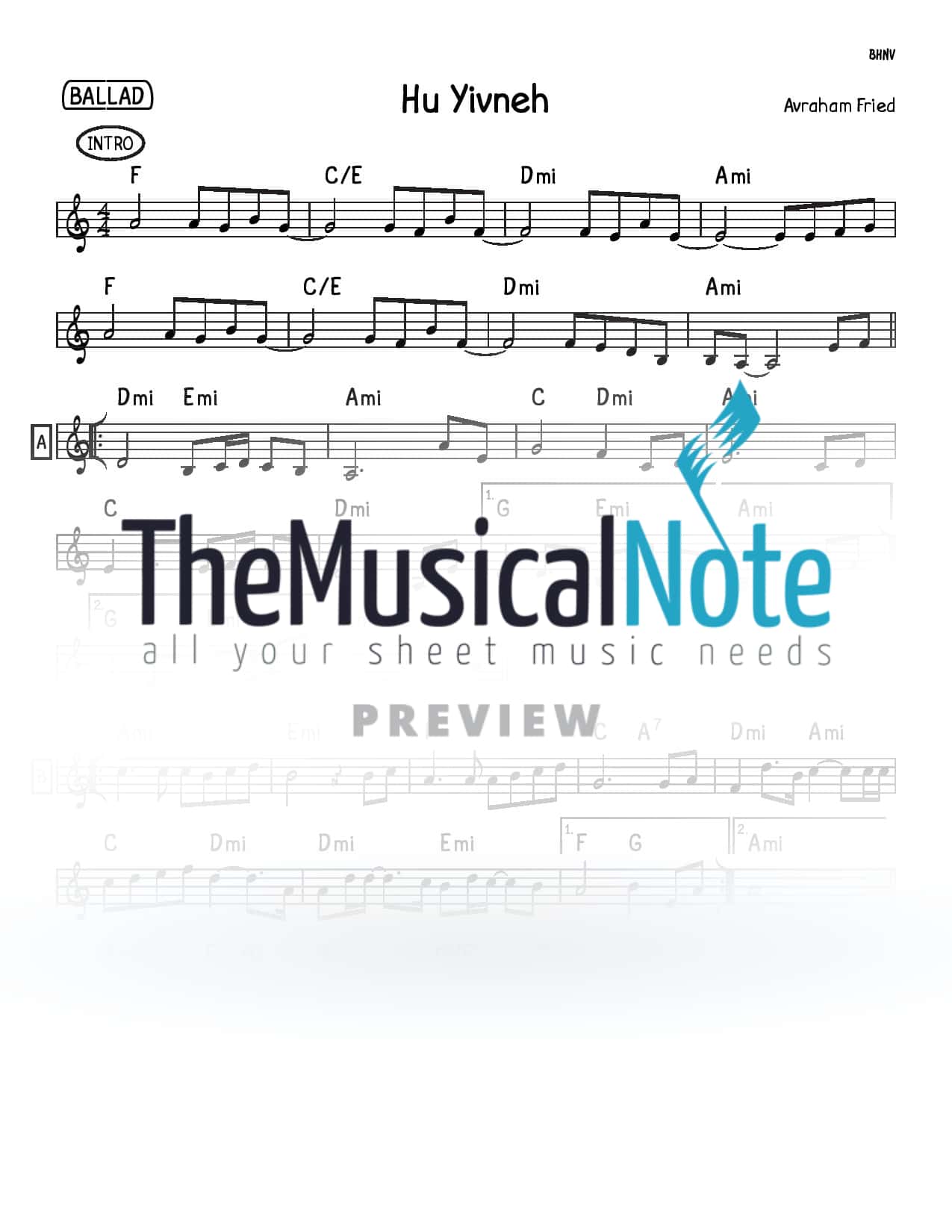 Avraham Fried - Hu Yivneh (Lead Sheet)