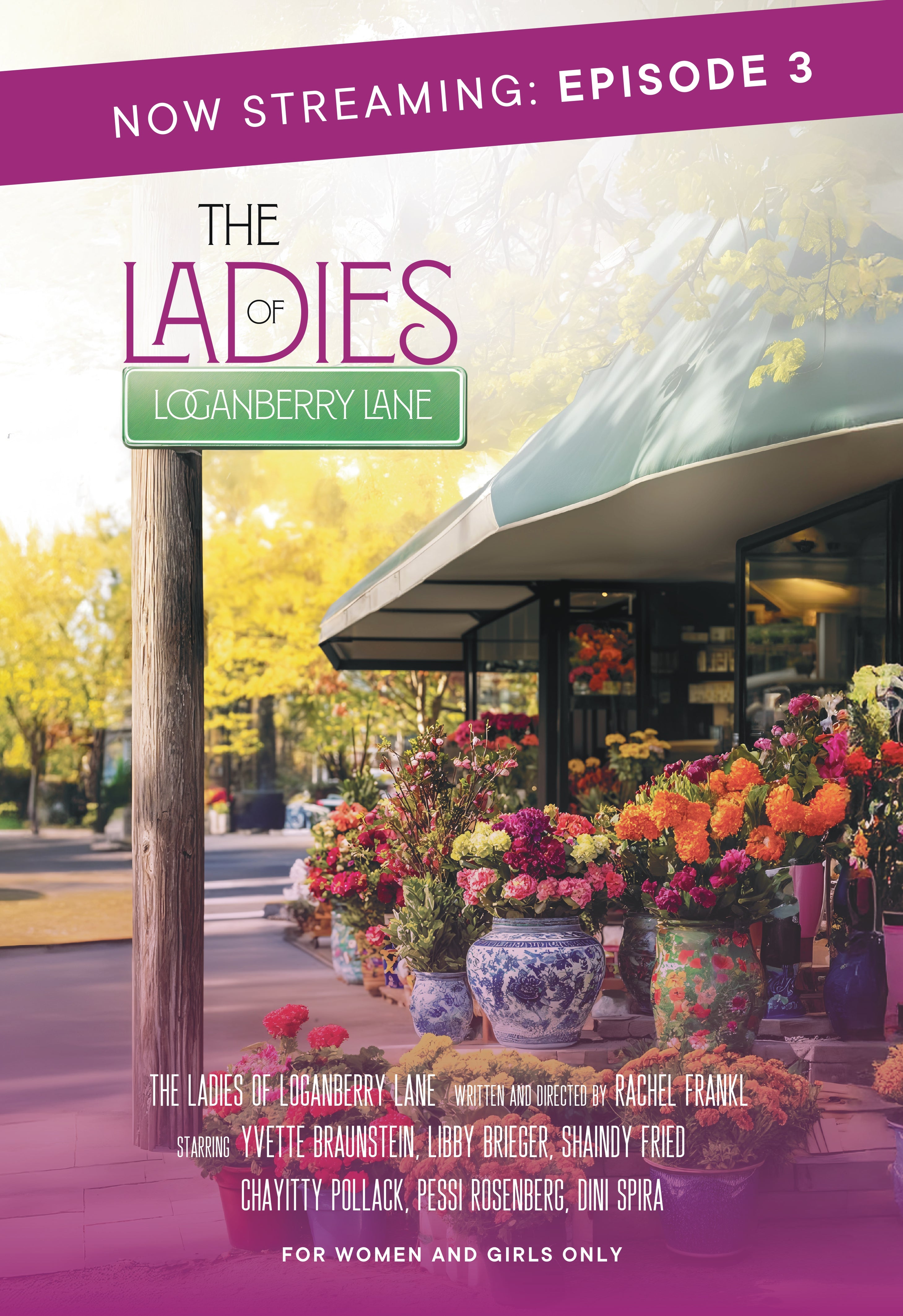 Get ready for a frum entertainment revolution! Introducing The Ladies of Loganberry Lane, the first-ever frum situational comedy series created by acclaimed writer and director, Rachel Frankl.